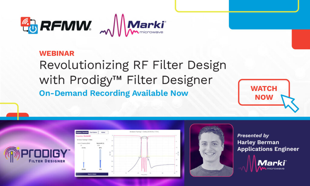In this on-demand webinar recording, speaker Harley Berman, Product Marketing Manager, explores the RF filter design space, gain insight into Marki Microwave’s filter design capabilities, and learn how to instantly engineer real-world MMIC filters with Prodigy Filter Designer. Harley has contributed to the release of products across many of Marki Microwave’s product families, published several application notes, as well as hosted webinars on component-level and system-level design considerations.